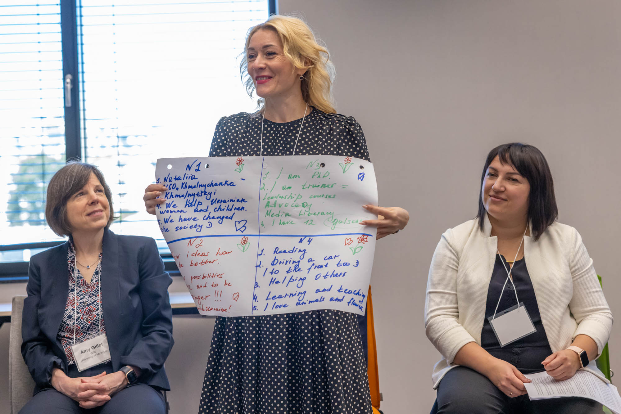 Amy Gillett: This was our eleventh NGO Leadership Workshop and the first specifically for Ukrainian NGOs. It was also the first time we held the event in Lublin, a city in Southern Poland close to the Ukrainian border. The attendees included 23 women and one man, and all are at the front lines of providing critical services for the war effort. Participants were able to travel to Lublin by bus or train, though it was an arduous journey for many due to the heavy lines at the border crossings.